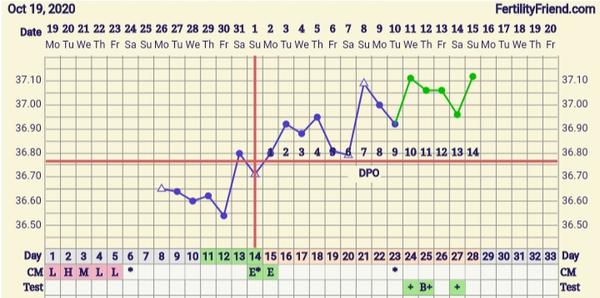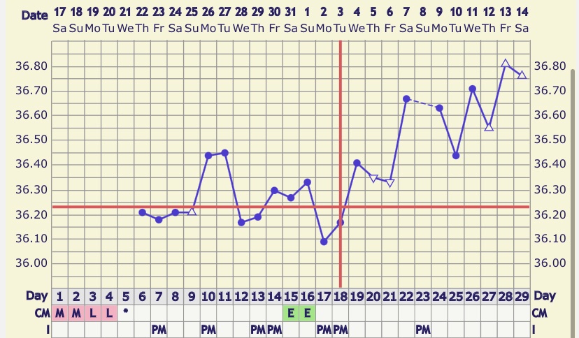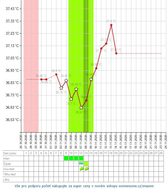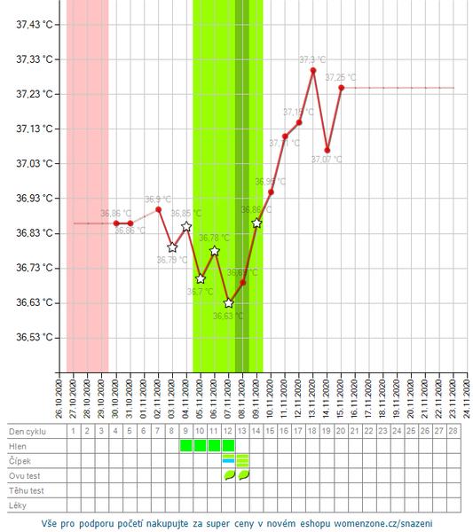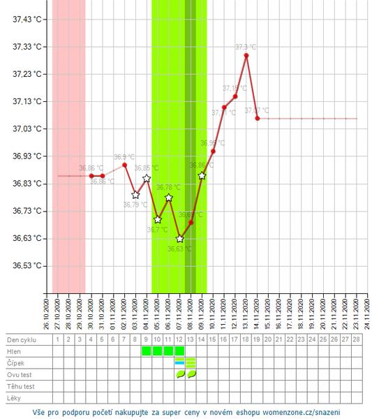 Dobré ránko, chcela by som Vám všetkým poďakovať, že ste so mnou od začiatku skúmali a analyzovali všetky čmuhy na testoch. Prikladám svoj posledný graf a testík. Myslím, že už nemá zmysel ďalej merať teplotu. 😊 Prajem Vám, aby ste si našli podobné koľajničky čo najskôr a aby sa Vaše rodinky rozrástli o malé klbká lásky. Pre seba si prajem, aby som sem grafy pár rokov nepridávala, čo by znamenalo, že všetko dopadlo najlepšie ako mohlo. Ďakujem ešte raz a prajem pekný deň. 🍀