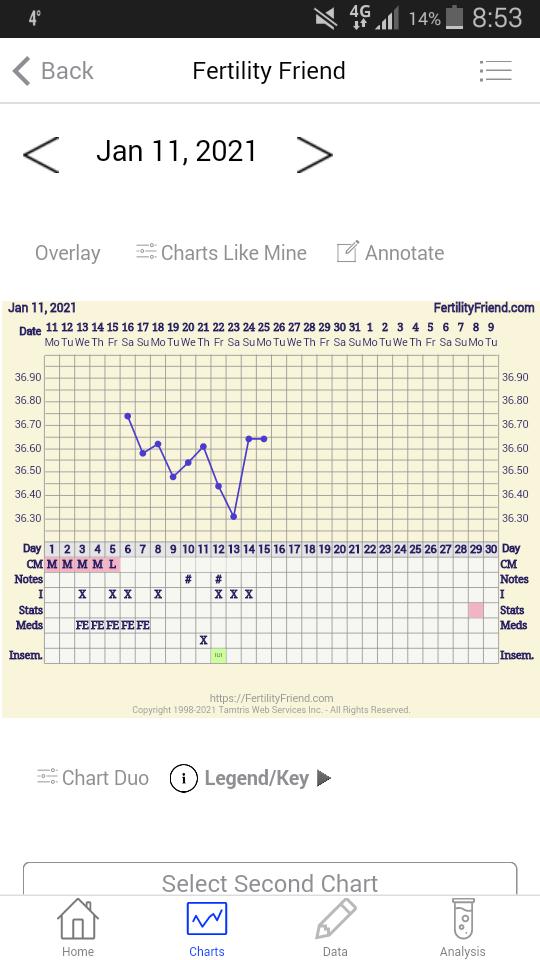 @deniss111 ahoj, ovulácia sa ráta v posledný deň nízkych teplôt pred vzostupom. Teda u teba by to malo byť 23.1. lebo 24. Aj 25 si už vyššie. Používaš bazalny teplomer na 2 desatinne miesta? Pretože ten sa odporúča na lepšie vyhodnotenie krivky, ale u teba to vidieť aj tak. Kde merias, pretože teploty máš celkom nízke.