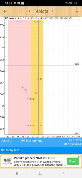 @majka_3 ďakujem krásne za radu...áno mala som aj ovitrele ale tiež si myslím že bola v sobotu kvôli tým bolestiam, ale na druhej strane ma to prekvapilo že taká nízka teplota, lebo keď som si merala BT par mesiacov a bez stimulácie, tak vždy po poklese teploty som stúpla nad 36,7 a toto ma prekvapilo, že je pod 🙂 ..ja som sa už zľakla, že vajko neprasklo a sa mi spraví cysta :( :( a ako nevyznám sa moc v tom :D teda neviem určiť ovu tak presne pokiaľ mi to apka nevyznačí a táto mi to nechce vyznačiť :D