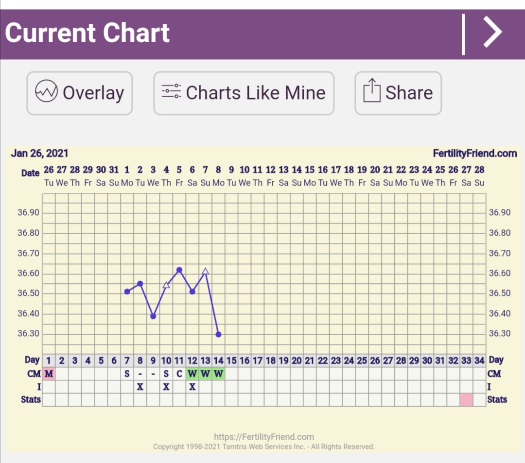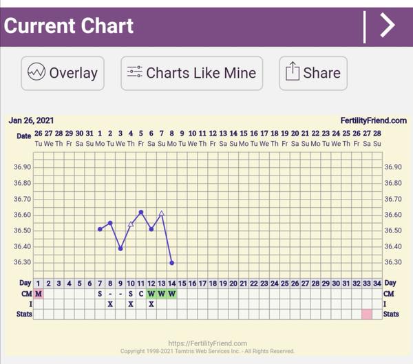 Ahojte, bt meriam prvý cyklus a teda nemám s tým žiadne skúsenosti len som si o tom čítala, chcem sa vás spýtať vyzerá ten graf zatiaľ v poriadku? Viem ze sa vyhodnocuje až za celý mesiac ci ovu bola alebo nebola,ale zarazila ma ta prudko klesajúca teplota dnes a ešte k tomu skáče hore dole neviem ci je to v poriadku alebo to značí nejaký problém... Cyklus mam 32 dňový, ovu mavam podľa ovu testov 17-19dc, tak som zvedavá ako bude vyzerať, dnes som 14dc