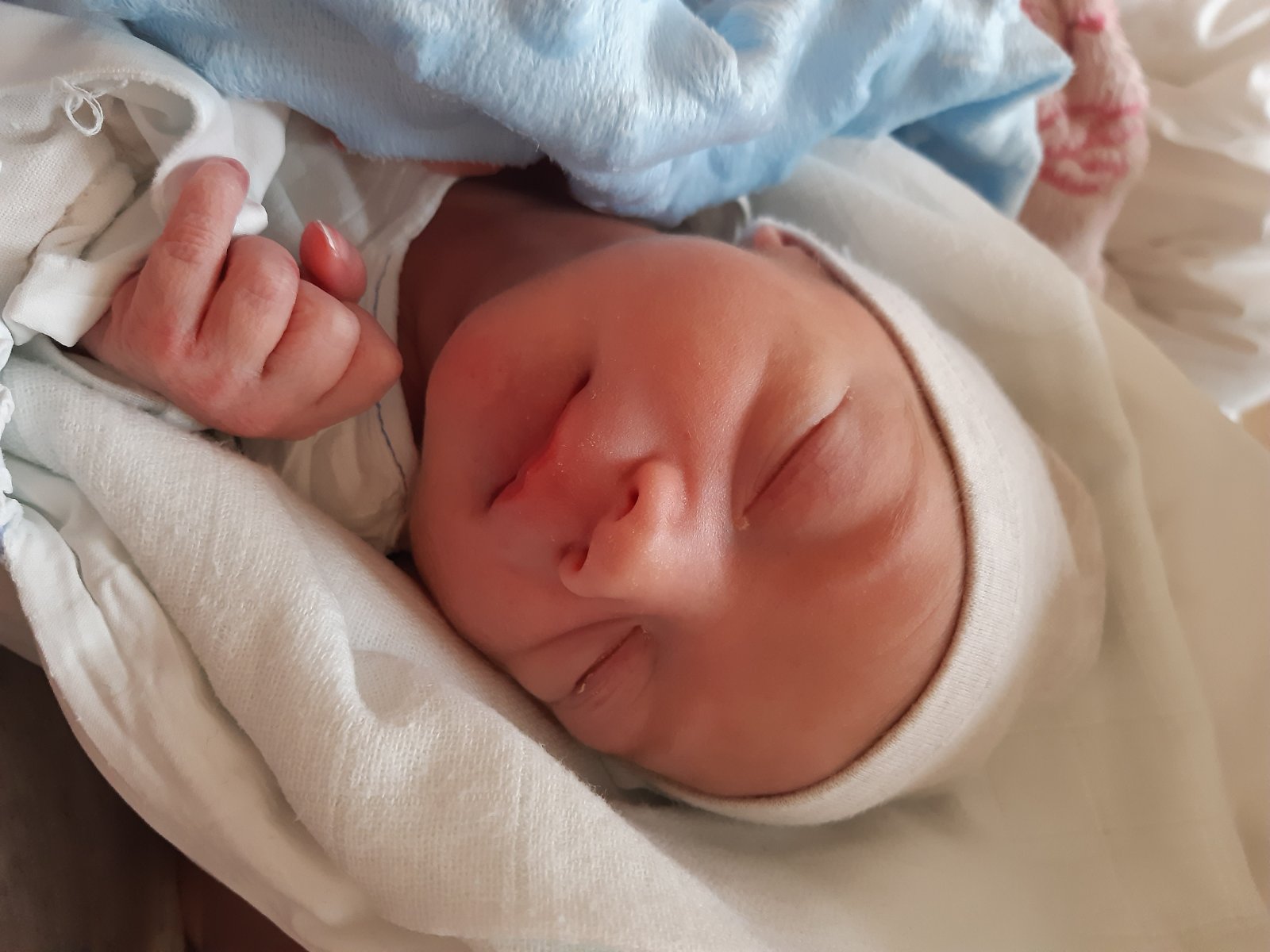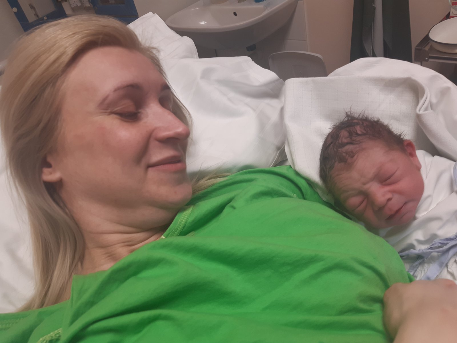 Ahoj baby moje zlate moje milé spolusnazilky spolubojovničky idem sa vám pochváliť .....sme na svete už aj my😍😍😍😍 keďže som mala 16.2.ráno nástup na vyvolávanie môj krpcek sa nadomnou zlutoval a v noci o 0:35 som sa zobudila ze mi praskla voda o 1rano sme isli do nemocnice 1:33 ešte pásy kontrakcie uz lietali do výšin dr.ma pozrela zo spodu že veď rodime... rychlo vozik zakázala mi tlačiť utekali som mnou do výťahu prehodili ma na box a o 1:59 bol Adamko na svete ma 2580g a 48cm bez nastrihu 🥰😍 len ma brutal bolia kosti akoby po nehode 😁🙈 Adam je bozsky len si nevedel udržať teplotu tak bol dlho na lôžku no už sme spolu a aj sa kojime 😍🥰