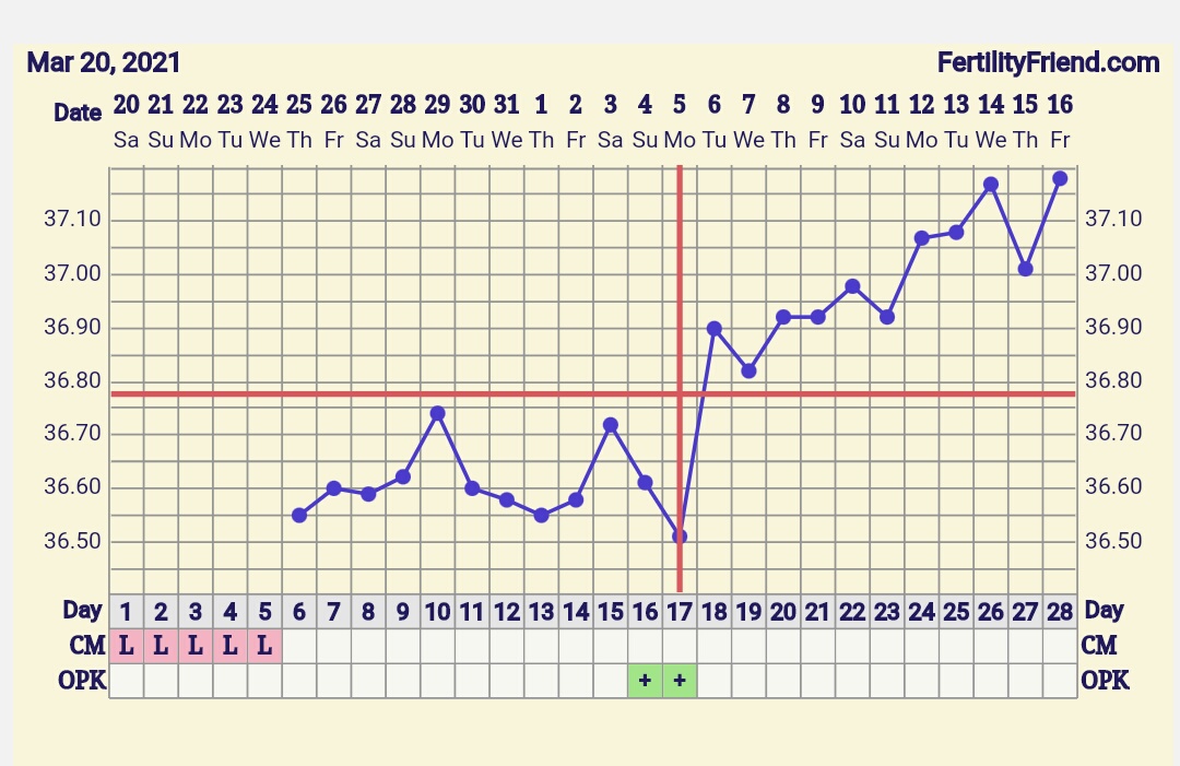 Platí pravidlo, tzv. pravidlo 3 po 6, že ovulácia prebehla: bazálna teplota v 3 po sebe idúcich dňoch je stabilne vyššia ako v 6 predchádzajúcich dňoch.