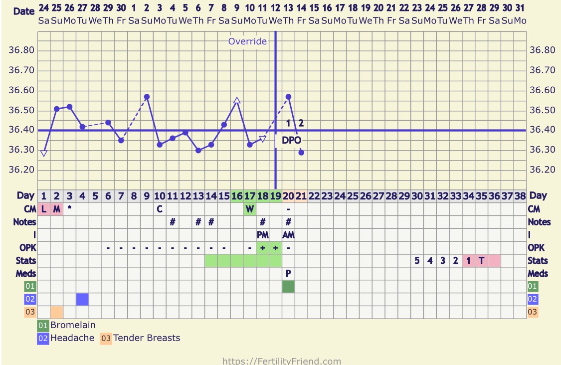 Ja uz začínam byť zúfalá s tej bt to každý mesiac inak. Teraz som mala na 18dc folikul iba vpravo 17mm, naplánovali nám 21dc IUI ale už na 20dc, keď som si mala pichnúť ovitrelle som mala pocit že už ovulácia bola. Tak som rano volala a.prisla hneď na kontrolu a už tam folikul nebol že praskol. To je v poriadku IUI sme teda zrušili lebo to už by bolo aj zbytočne ho robiť. Ale nechápem tej teplote dnes ráno 36,29? Ved to by nemala po ovulácii byť predsa taka nízka nie? Ale držať sa už iba hore 🙁