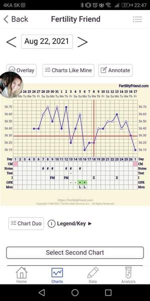 11.8. mi dr. potvrdila tvoriaci sa folykul, avšak ako vidiet ovulácia v tom čase neprebehla. Avšak ma prekvapila v tom istom cykle ovulácia ďalšia, avšak tu sme celkom aj premeskali, lebo už som ani nedufala, že vôbec nejaká bude. Tak, kde je to plusko, je len cca lebo ovulacn test nebol úplne pozitívny ale asi som deň presvihla, ale... prekvapuju ma celkom vysoko sa držiace teploty, aj keď dnes ráno bol test negatívny.