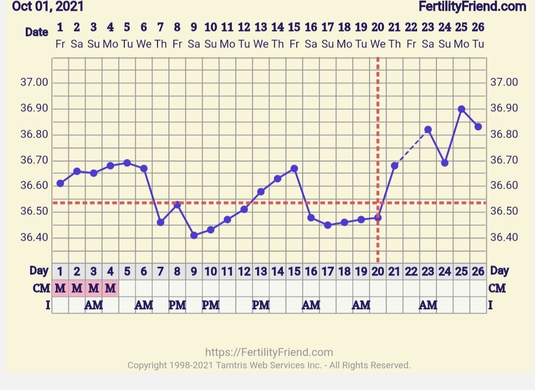 Hlásim 1DC 🩸 Ale na druhej strane som rada, že som mala taký ukážkový cyklus a prišiel mi presne ako mal. Teplotu nejdem merať, mam ešte par ovulacnych, tie miniem a dúfam, že koncom novembra budu 2 // a muž dostane Darček a rodina na vianoce 🙏🥰 budem vás tu sledovať a držať palce. See you soon 💛