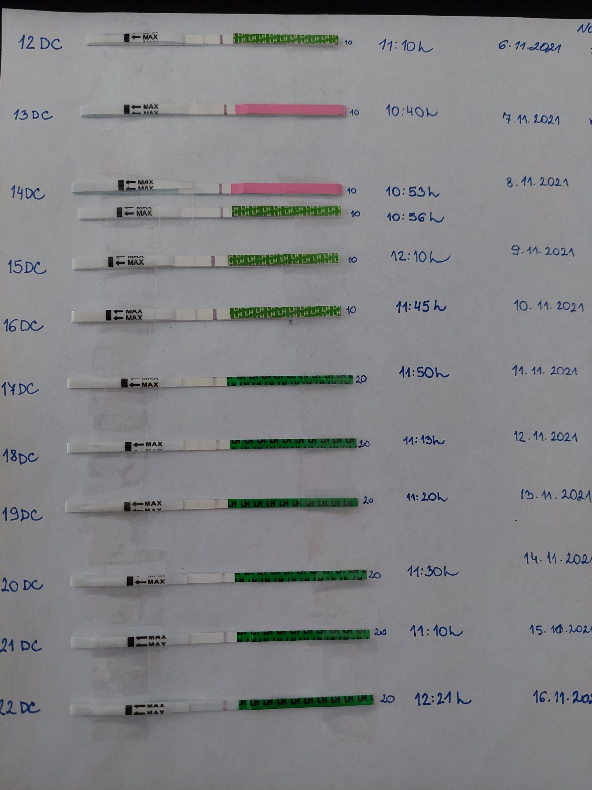 @blabla22 keď si pozrieš lepšie, každý test je tým pádom negatívny lebo ak je pozitívny je tmavý alebo tmavší ako testovacia čiarka...akože mne dr povedala ze ovulacne testy sú nepresne a nespolahlive ale mala som doma, chcela som minút...predošlé testy mi viac menej sedeli a tmavli ako ovu a tieto skoro biele