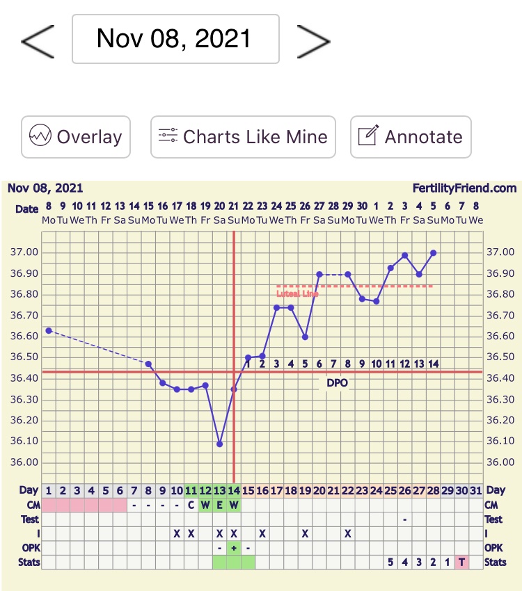 @ilovepizza naozaj ukážkový graf..nemohla byt ovulacia tak o jeden- dva dni neskôr? Vyznačilo ti ju v deň pozitívneho testu, väčšinou prebehne až potom..ako si to mala pocitovo? potom by este mohlo byt na test možno skoro a ukázal by neskôr ?