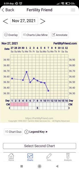 ahoj. tie skusenejsie meracky, mate skusenost s tym, ze ked takto klesne teplota, moze sa blizit ovu? Ide mi o to, ze chlap ma ist vo stvrtok na spermiogram, tak 5 dni mame mat celibat, a ja teraz neviem ci sa blizi ovu, a mame sa potulit a teda by musel prelozit termin toho spermiogramu (aj ked som ho ledva nan dostala). Nechcem premrhat mesiac, zeby sme cakali na ten spermiogram a ovu by prebehla medzitym. Ovu testy nerobim. A zatial som len 11DC, co na moje pomery by bolo skoro na ovu, zvycajne mavam ovu tak okolo 16-20DC 🤷🤷🤷