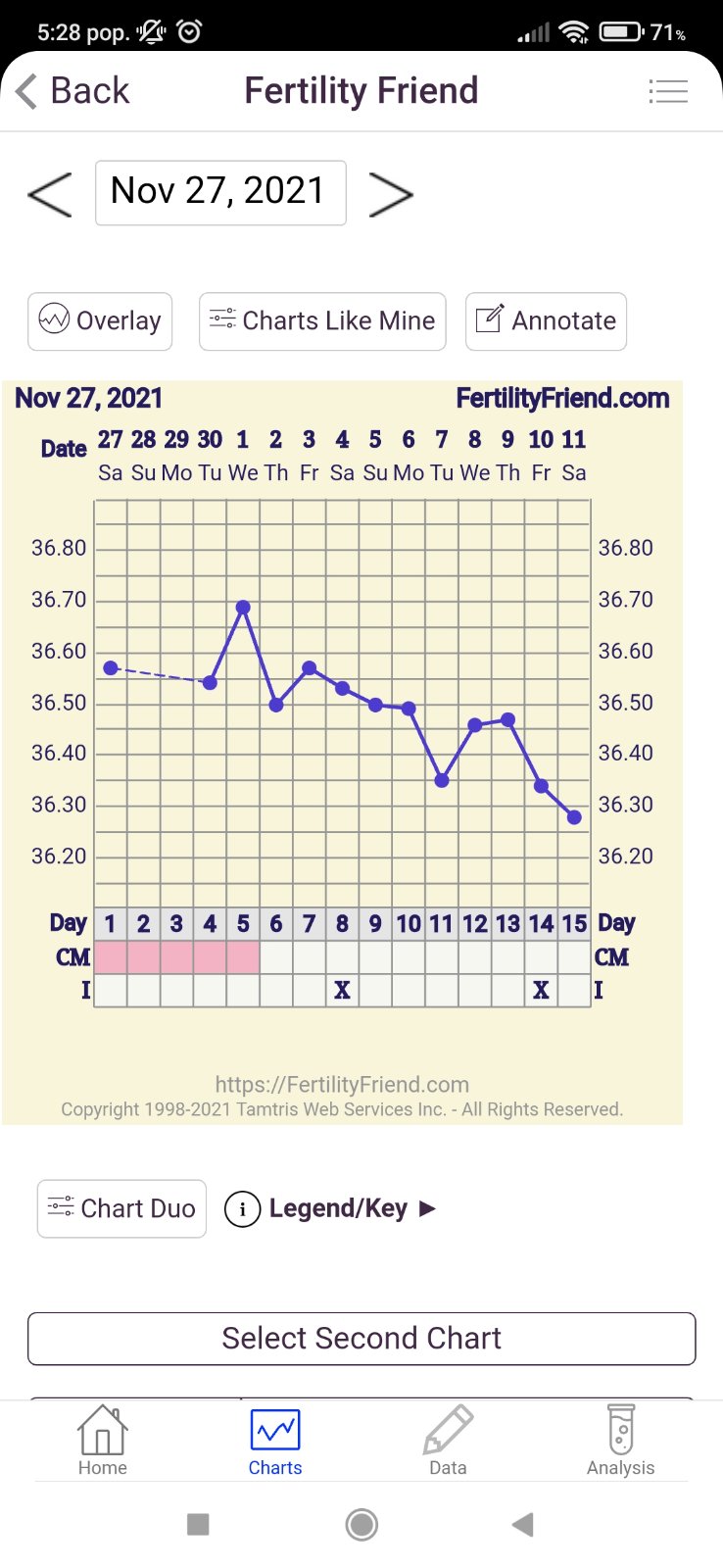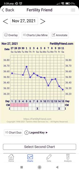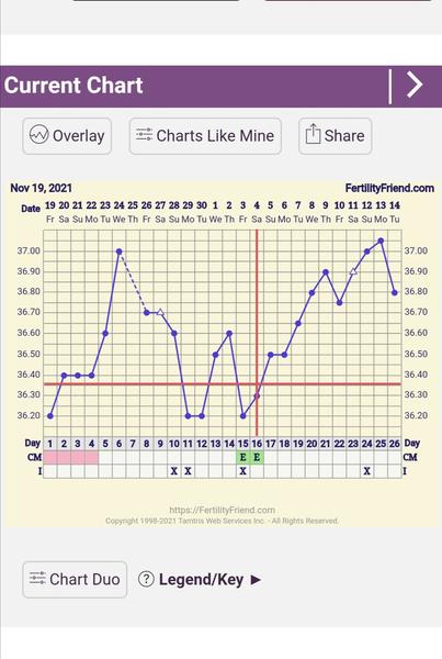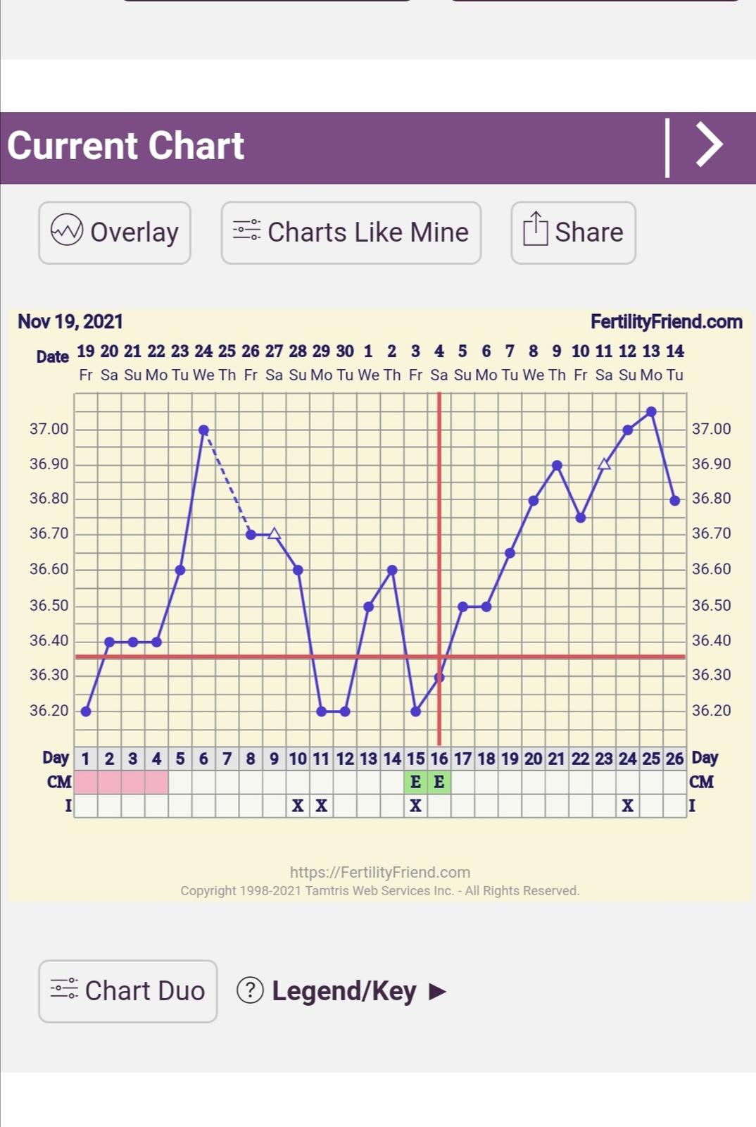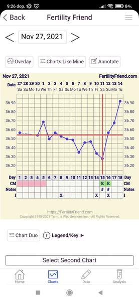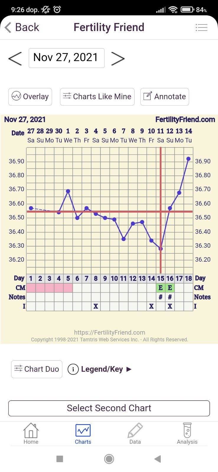 @sindyem ahojky áno klesla som ako vidíš, takze podla teploty ešte ovu asi nebola...ale preco potom ten vytok a "skoro" pozitívne testy ?? Minulý mesiac som malanaz 24, predtým 19, 46, 17, 21 tak si vyber 🤣 aj b, som sledovala vytok ale stále mam nejaké vlhko 🤷♀️ som z toho normálne ze pako...jedna appka píše ze ovu bude 19, druhá 21, tretia 22 🙈😀