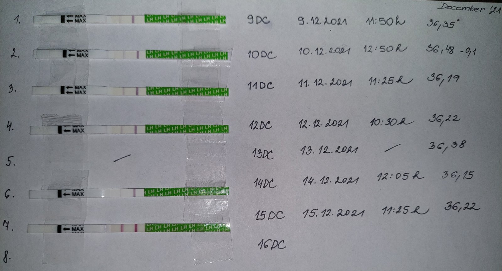 Aktualizácia mojej ovulácie 🙈 po tom, čo som si myslela, že okolo 11 a 12 dc sú pozitívne testy (hanba mi 🤷♀️🙈🤣) som si včera robila a bol skoro biely. Ale dnes mi to nedalo, vytok ako bielok (konečne som pochopila co to aký vytok je) som si urobila test q ta čiarka sa tam rysovala ešte sa necrtala ani testovacia. Takže dnes s istotou hlásim pozitívny ovulacny test, ktorý som takýto snáď ani nemala a čakám, že dnes, zajtra prebehne ovulácia 🥳❤