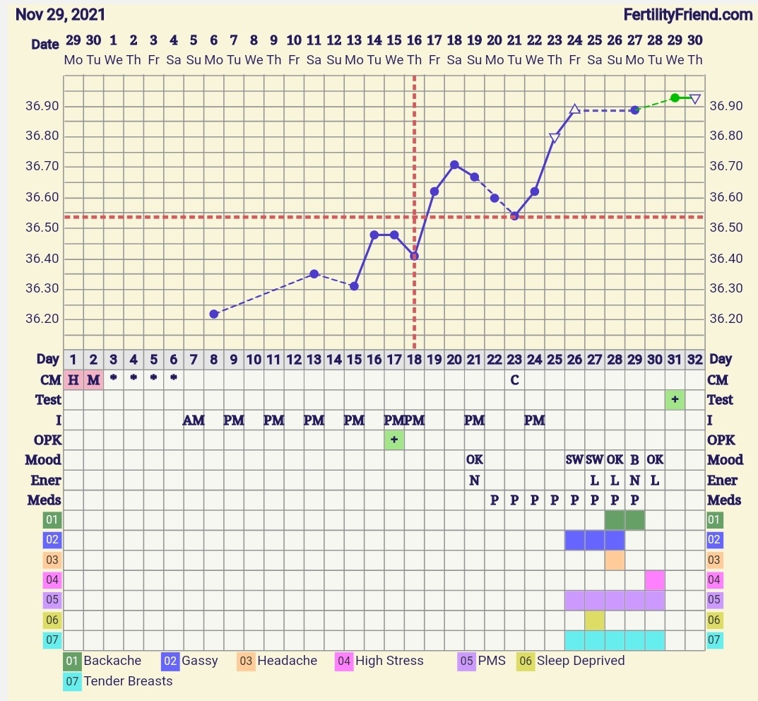 @sindyem Áno dnes 9DPO. Keď si porovnám mesiace tak je iný tento mesiac vo všetkom…neskorá ovu až 23dc potom až dnes začínam kus cítiť prsia a inokedy bolia už od 6-7DPO…brucho ako na kramy ma bolelo v pondelok a to som aj mala dostať ms keby som nemala posunutú ovu. Priložím graf merať som začala až keď som si myslela že ovu uz bola a ona nebola…cely rok vravím že ja otehotniem v decembri všetky kamky porodili v sptembri tak snáď nebudem trhať partiu 😂