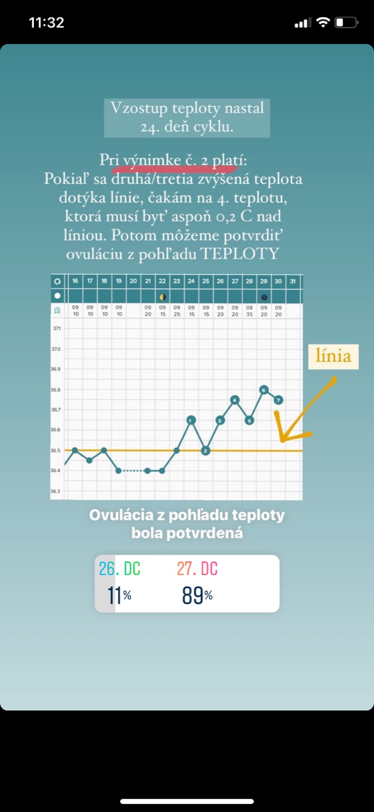 @modro_zelena ďakujem, no toto som vedela 😉 len nechápem načo tam značí aj tie línie. Nakoniec sa aj mne posunula ovu, aj keď mi to sedí viacej na 18DC, tak stále mi nejde do hlavy, prečo som mala vyššie teploty aj pred ovu. Zaujímavé, ako je každý cyklus iný 😀😀😀 a samozrejme ani na 15 ani na 18 DC sme sa s manželom nesnažili, však načo 😀😀😀😀. Tak každopádne každej z nás držím palce ✊✊✊ už len čakať 😊. Aj keď nemám moc rada toto obdobie, sa cítim ako blázon 🙈🙈🙈 každé pichnutie si pripisujem možnému tehotenstvu 🙈🙈. Aj teraz mám obzvlášť citlivé bradavky 😂😂😂. Je to taký pocit strachu z toho, že budem znova sklamaná. A aj keď si každý nový mesiac nahováram, že s tym prestanem, nejako mi to nevychádza 🙈😀.