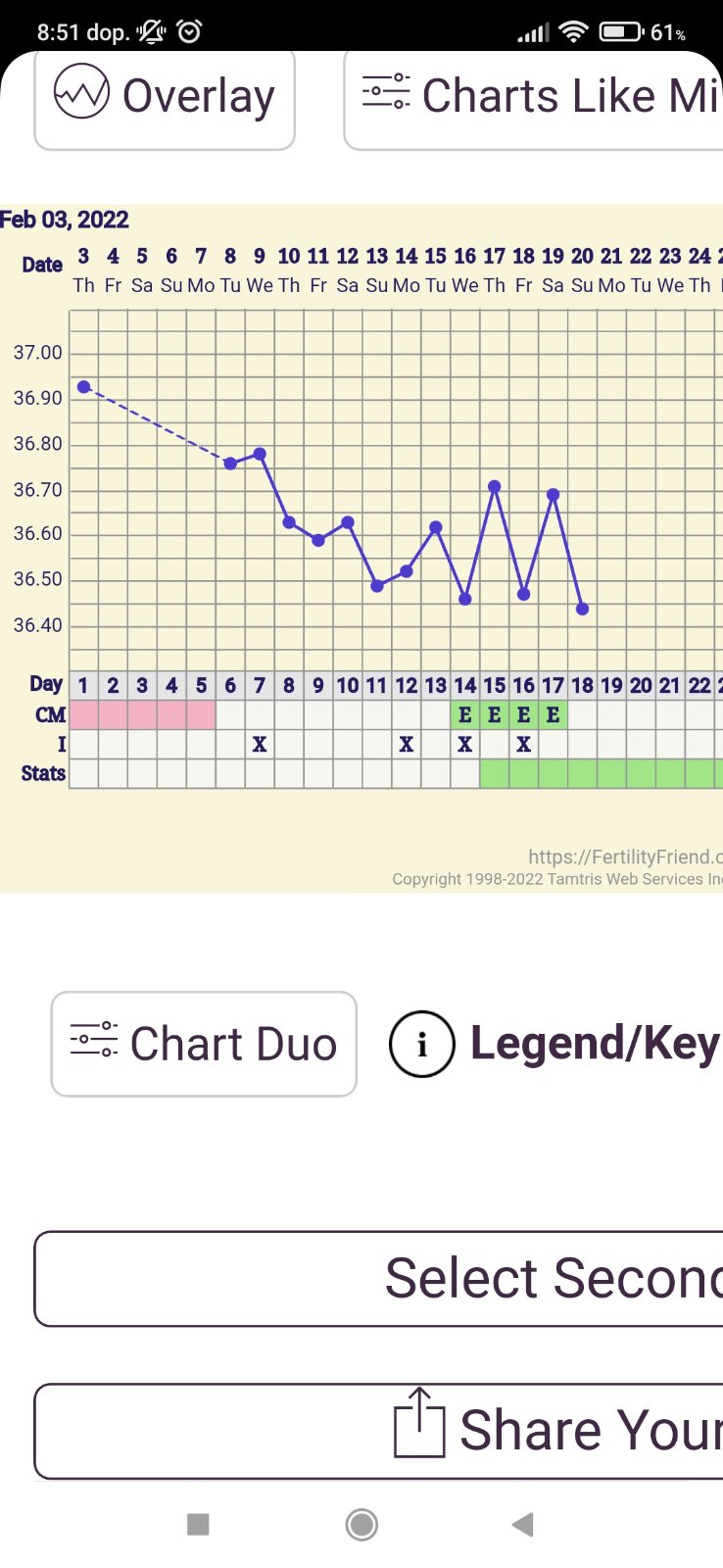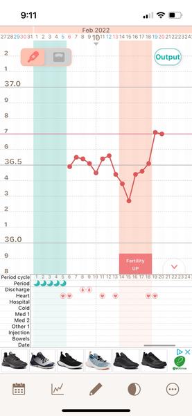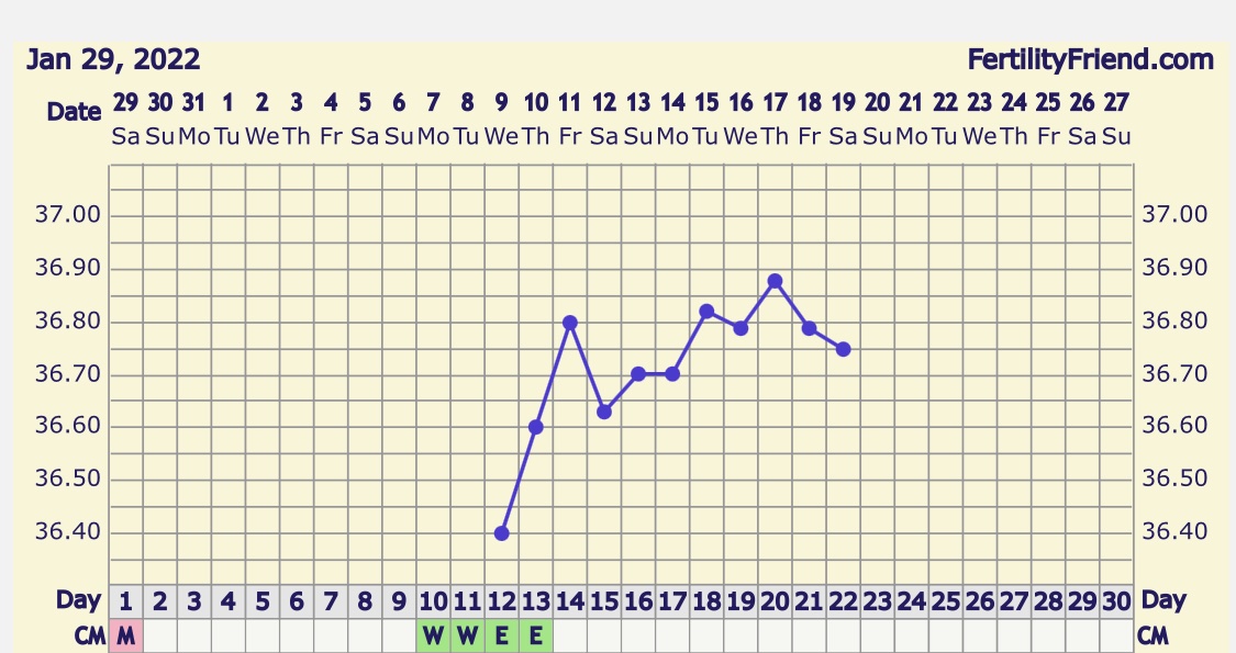 Ja sa už pomaly dostávam na svoju hladinu síce mojich poovulacnych teplotách, ale snáď sú to stále len pred a teplota sa potom bude držať asi až na 37 🤷♀️ toto bude záhada...ak som si manuálne na zajtra pridala teplotu, ovu mi vyzancilo na 8dc co som mala v tom čase clostyl .... ale tak graf neberiem do úvahy...no bude to ešte zaujimave