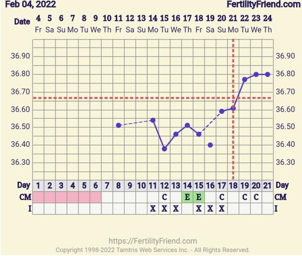 Ahojte dievčatá, chcela by som sa poradiť. Ako v podstate neni to až tak podstatné ale chcela by som dobre odrátať DPO. Najprv sa ovu vyznačila na 15dpo, na ten deň to aj sedí, bolelo ma aj bruško. 16 DPO som nemerala (tu bodku si nevšímajte len som skúšala vyznačenie ovu plnou čiarou 🙈). A teraz sa mi prehodila na18 dpo. Ktorý deň by ste rátali vy??? Ďakujem 🤦♀️😀.