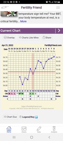 Nooooo ovu vyznacilo 🤷♀️ teplota o 7.30 bola 36.28 ale hneď som zaspala do 8.30na bola už 36.41. Teoreticky tam nárast je. Aj tu včerajšiu som mohla nechať kľudne vyššiu. Fakt som zvedavá ďalšie dni. Mam nárast ale nie je taky veľký skok. Dokonca sa mi včera zdalo, že už mám taký ten žltý hustý poovulacny vytok