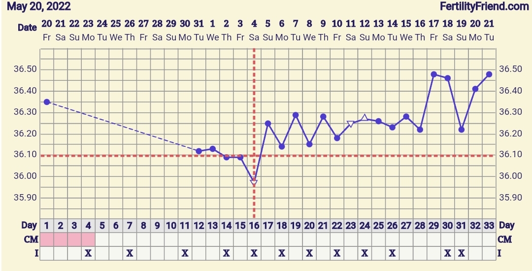 @kikita777 z tvojho grafu sa neda absolutne nic vycitat, nakolko posledne teploty nemas vobec zaznacene a od 18 dc to vyzera, ze merias v inom case, ako predtym. zaroven su “pofiderne” tie vyskocene teploty na 22 a 23 dc, ze to vyzera, ze si mala teplotu a bola si chora. takze ak si bola chora, pripadne ak si merala ovela neskor ako bezne, tak namerane teploty nemaju ziadnu vypovednu hodnotu. pokial merias prvykrat a nepoznas svoj cyklus, tak odporucam, aby si aspon tri mesiace merala naozaj poctivo a pravidelne kazdy den v tom istom case (do polhodinoveho rozdielu) aj cez vikendy.. jedine vtedy ti vyjdu grafy, z ktorych budes vediet nieco vycitat a pekne ti budu ukazovat aky mas cyklus. za tie tri mesiace si to budes vediet odsledovat a potom uz ked nebudes chciet, tak mozes merat napr do ovu a po ovu nie, ale uz budes aspon poznat dlzku lutealnej fazy, tak budes vediet kedy by mala prist MS atd…