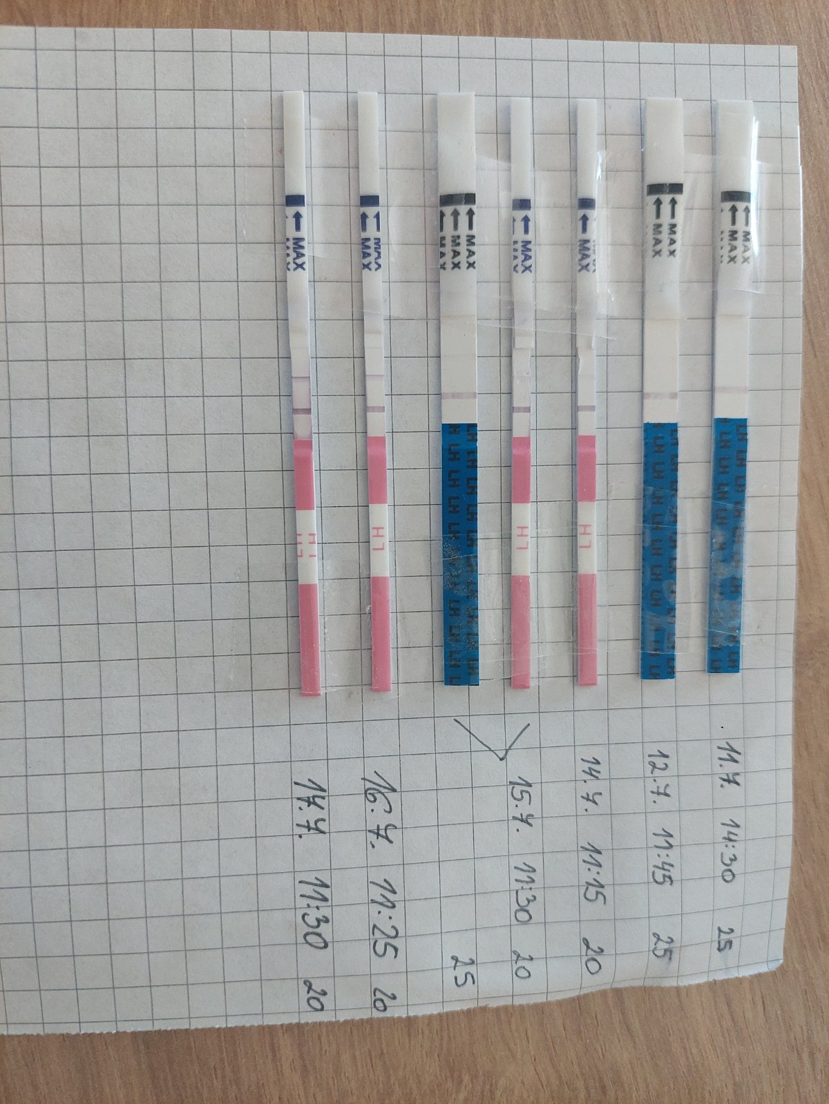 Ahojte, tak ja dnes ešte dole. Neviem teda ci je ten test tmavší alebo nie, čo myslíte? Každopádne ďalšie už nemám, ani nebudem mat. Už to bude len na teplote vidieť. Skúsime sa ešte večer posnazit, no bolesti už nemám, akoby už bola alebo mam pocit, že dnes je posledný deň nižšej teploty. Tak uvidíme 😊