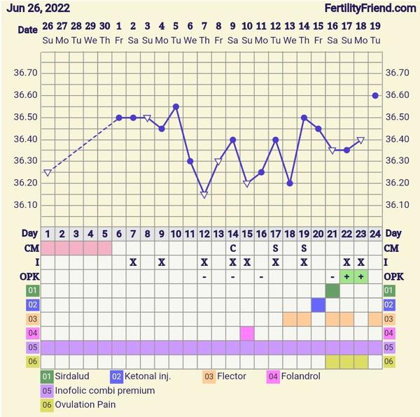 @bejka90 no toto nemôže byt anovulak ani nahodou. Mas tam krasny teplotny rozdiel. Ja ked tak pozeram ba ten graf tak za mna este o den neskor ako mas vyznacene prichadza do uvahy, najneskor. Potom uz nie. Nebola by keby si tam nemala vobec ziadne ciary. Ty ich mas, len si appka nie je ista v ktory den bola.