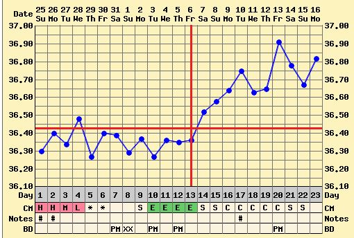 Ahojte zienky,takze moj grafik takto,dnes som musela merat o 2 hodinky skor,ale je to jedno...ovu niekedy teraz prebehla,prebieha,ja neviem,vcera vecer este bolesti boli http://www.fertilityfriend.com/home/jaja