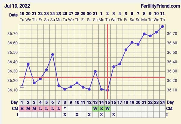 @katkaholiova hmm no hej tazko z tvojho grafu vycitat ze co bude :( tak uvidis este zajtra....ak klesne este teplota tak asi pride mrcha :( ale na tom teste sa mi zda ze vidim 2 ciarky takze neviem vobec :( ale pritom mas pekne vysoke hodnoty
