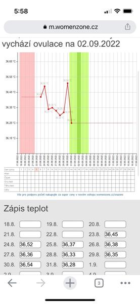@zojeva supper teplota len tak dalej 🙂 tak co ja viem podla mna trochu alkoholu nema vplyv alebo neviem ja so msi tiez vcera dala 2 stamperliky domacej a niekedy po veceroch si dam pohar vinka :D noa u mna teplota hroooza uz ma cele brucho boli neviem ci z tej ovulky ktora je niekde v dialke alebo z tolkeho sexu :D ale uz dnes si musime dat pauzu bo uz aj muz vravel ze je vystaveny vcera :D vzdy cosom merala (3ti cyklus) tak bola ovulka 15dc a teraz som uz 17...nodufamze uz bhde dnes nieze sa mi to bude vliect dalsich 10 -15 dni :D alebo anovulak :(