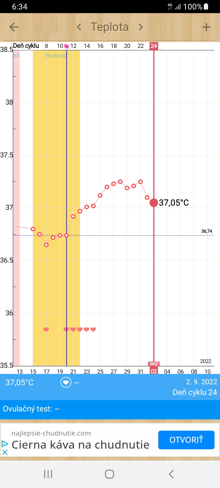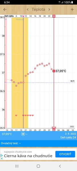@bejka90 ahoj , ďakukem za odpovef🙂 áno mám také vysoké teploty pred ovu. Dnes teplota o trochu klesla. V utorok v noci som mala strašné bolesti v podbrušku, asi 20 minút, no hrozná bolesť. Test som ešte nerobila, nechcem ďalšie sklamanie, tak chcem počkať do nedele aspoň. Posielam dnešný graf.