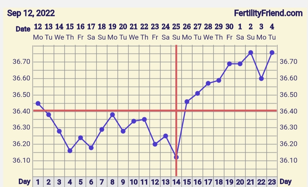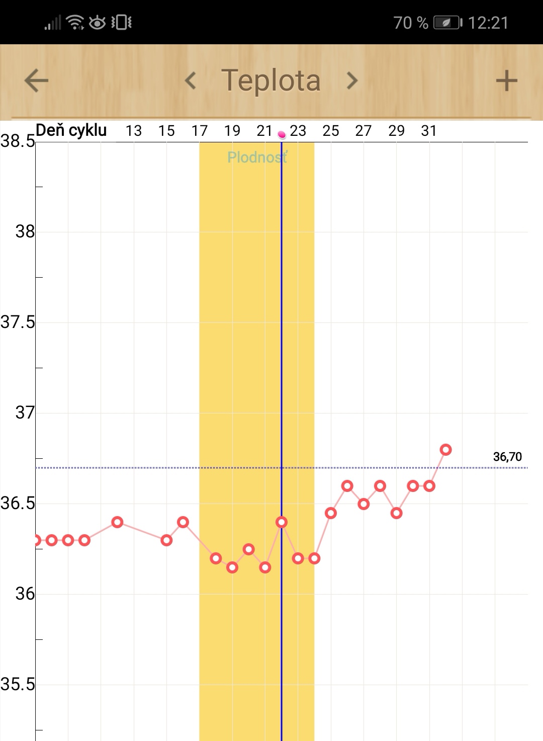 Teraz mám prvýkrát teplotu nad 36,65 po ovulácii tak som zvedavá, či je to len tým, že bojujeme doma s rotavirom alebo to môže byť priznak tehotenstva. Pripájam graf.