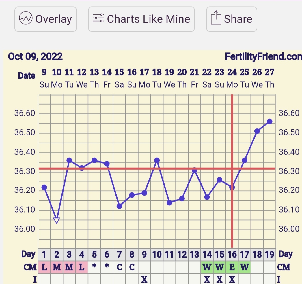 @bejka90 no mozno ak by si zmazala tu jednu teplotu tak by ti ju vyznacilo,lebo ta je vyssia ako tie co mas teraz a teplota po ovu by mala byt vyssia ako tie pred.. 🤷🏽♀️ a este uvidis co to povie zajtra..ja teda meriam prvy cyklus,hned ako mi dr oznamil dg tak mi doporucil Dikirogen a ja som k tomu pridala gynex kvapky a hned aj ovu bola to ma potesilo ☺️