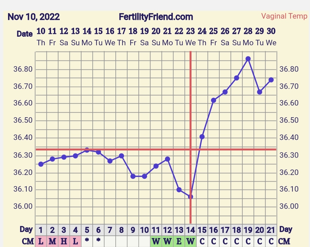 Ja dnes takto..ja mam pocit ze mam nizke teploty tie po ovu,aspon podla toho co sa uvadza na nete by mali byt aspon o 0,4 vyssie ako tie pred 🤔 a myslim ze ani tento mesiac z toho nic nebude 😔 po novom roku asi skocim k dr nech mi nieco predpise,predtym mi pomohol otehotniet duphaston 😏