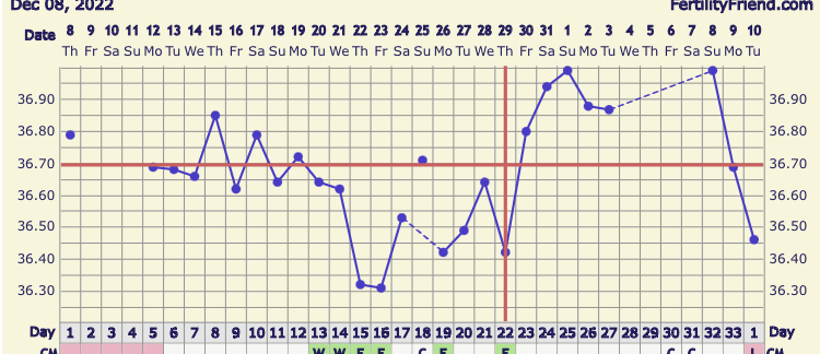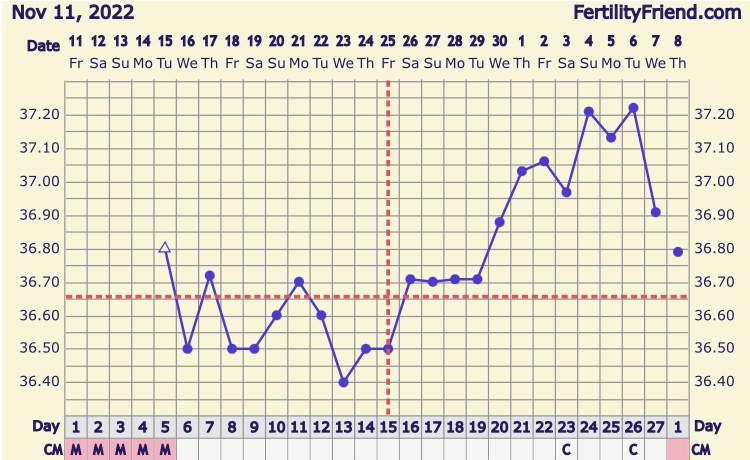 @patkajj mas kazdy graf jedinecny, ale ktovie ci aktualne nie je az dnes ovulacia predtym si mala na 22DC, ale to je len take tapanie a nastrely 🙈 ale zvyknes v lutealnej faze mat teploty vyssie az ku 37 tak sa mi to nevidi dako…
