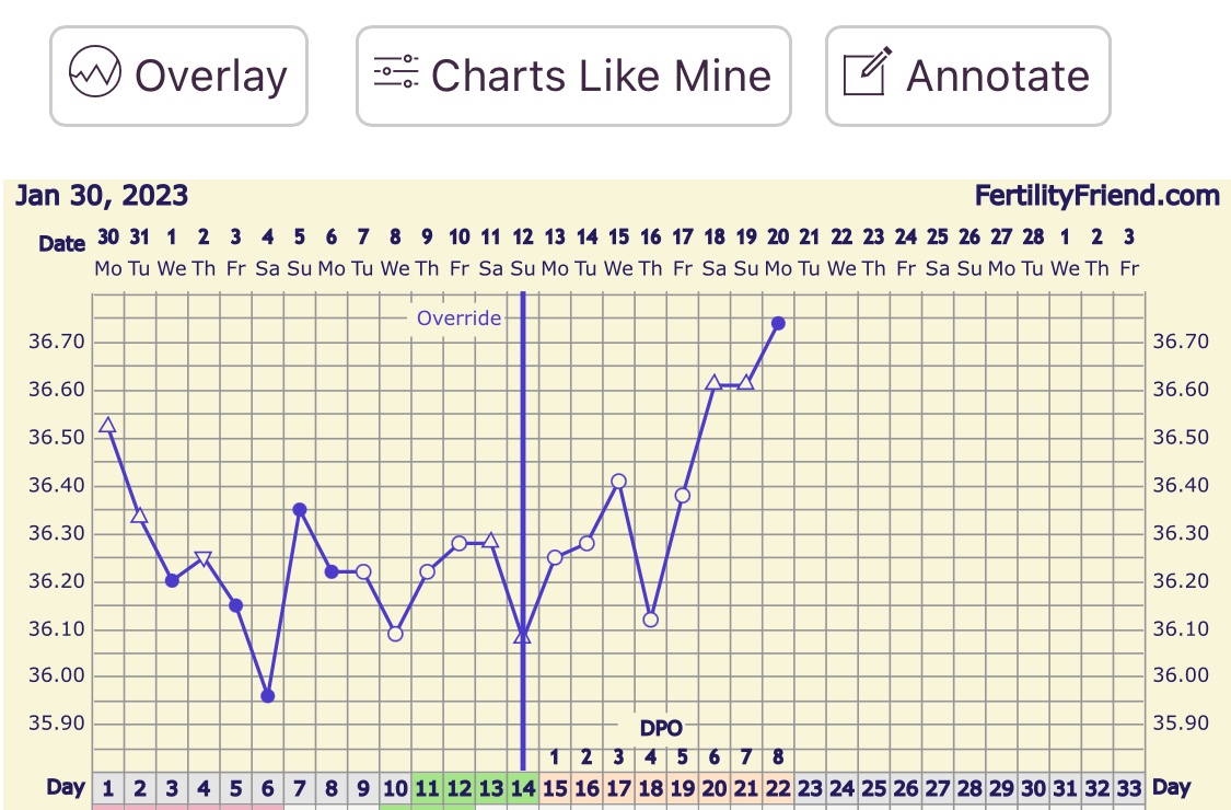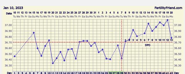 @domi27domi podľa grafu by som ja vybrala dokonca 3 dátumy ovu: 10, 14 a 18 dc ... Ale keď ti 13teho povedala, že máš po ovu, tak 10teho potom ... Ale celkom tie teploty sú zvláštne, nemerané v jednom čase