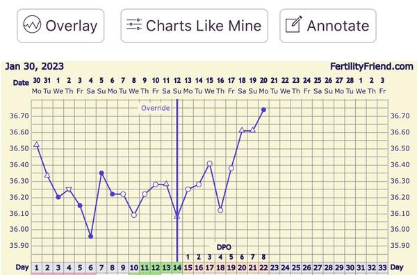 Ahojte, čo hovoríte na tento môj graf? U doktorky som bola 13.2. a povedala mi, že už mám po ovulácii. Graf mi ju však nevyznacil, tak som skúsila sama. Stalo sa vam niečo podobne? Že lekár potvrdil ovulaciu a teplota nie? Skúšala som aj ovulacne testy, tie mi kvôli PCOS nikdy nevychádzajú 100% pozitívne ale najtmavsi bol 09.02.