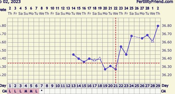 Tak aby nebola nuda pridám aj ja ten svoj 😁 minule som riešila, že asi to bude anovulák, alee tá teplota predsa len trochu poskočila. Myslíte že mohla predsa len ovu prebehnúť pri tých vyšších teplotách? 🤔🤔 Alebo sa mám držať prvej teórie? 😂