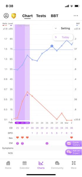Nijak raz mi to nesedelo minuly cyklus som to neriešila lebo som nepoužívala ovu testy čože som verila apke ale teraz to od začiatku som bola že proste neviem už