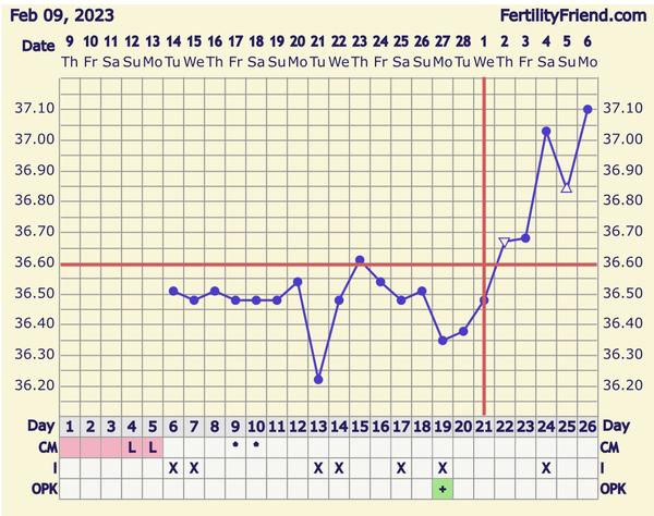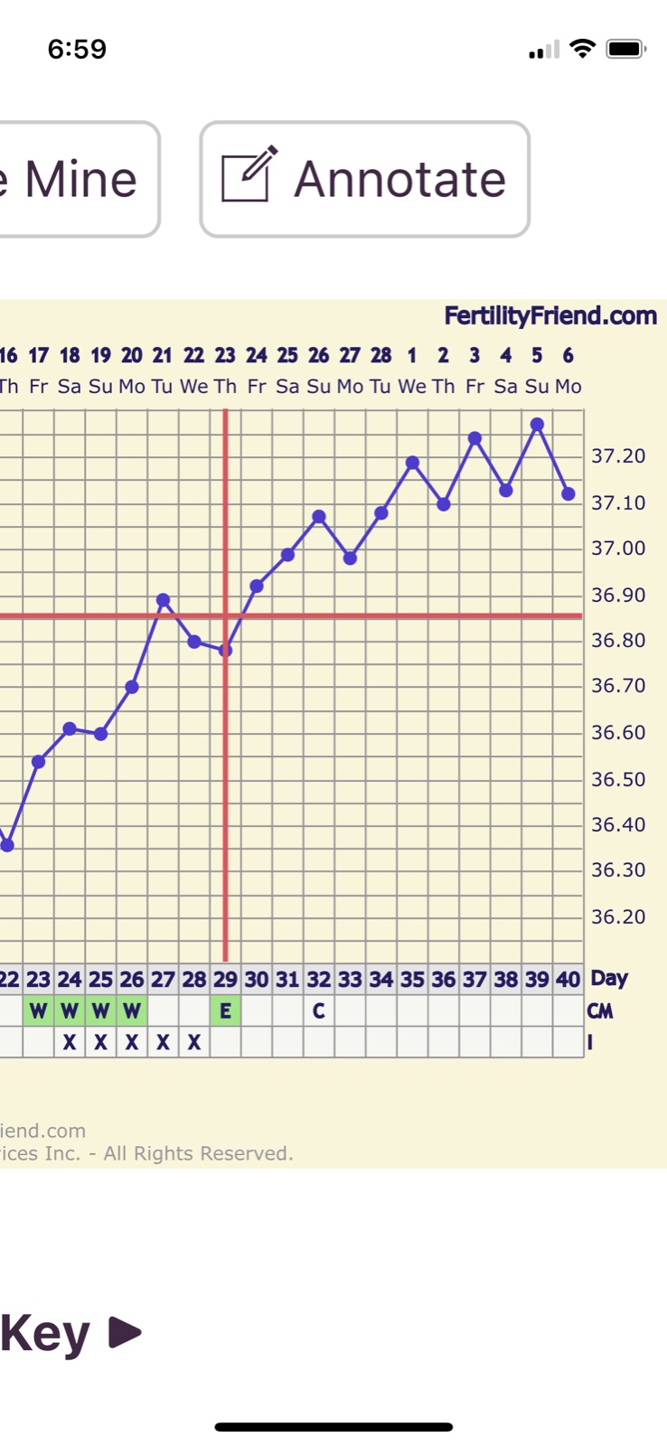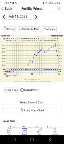 Dobre ranecko takze včera som si upravila v grafe ovulaciu a dnes som 11DPO teplota 37.12 takze ďalšie 2 nasledujúce dni sú pre mna kľúčové snáď neklesnem 🙏🫣