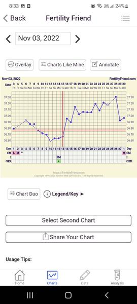 Ahojte 😊 tak ja s grafom takto…ale mam uz asi po ovu, boli sme v Tatrách na víkendovej lyžovačke, tak som dva dni nemerala a podľa bolesti, mohla byt ovulka prave sobotu na 11dc….ale tak užili sme si jeden druhého, nic nebolo nútene, len spontánne 😁 tak uz len čakám co z toho bude-nebude