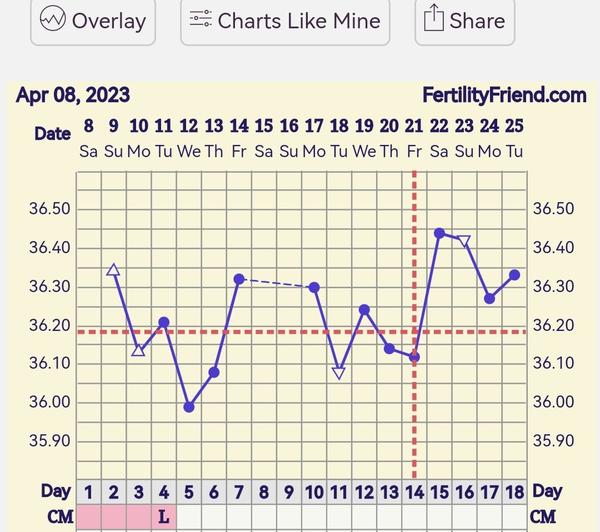 Práve takýto graf mám už 3 mesiac krásna ovu podľa teploty aj testov a nič z toho .. či je to aj vekom .. ďakujem dievčatá za podporu 🤗 všetkým snažilkam držím prsty 🤞😊🍀