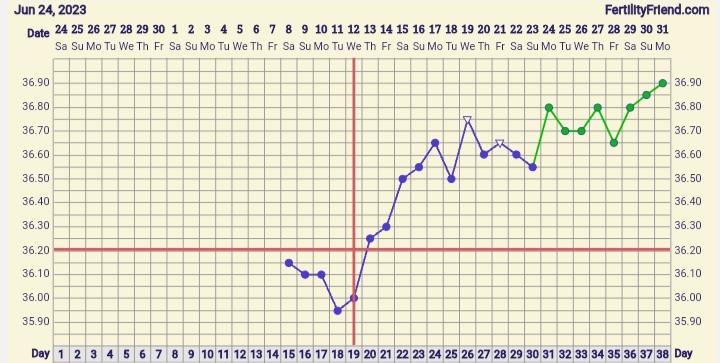 @fiora94 ahoj ja som mala v oktobri...2-3 dni mi meskala ms a ciarky som mala slabsie ako je tvoja. Prikladam graf. Ale.podla mna z grafu to nevies usudit a zbytocne nestresuj s farbou ciarok ;) kym nemas nejake.spinenie alebo nieco tak by to malo byt ok 🙂 si len 12dpo ja so maj v normalnom tehu mala taku slabsiu ciarku nie silne kolajnice