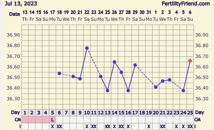 Ahojte, tak sa ozývam zasa aj ja 😌 toto je druhý cyklus po MA a prvy čo som začala merať 😁 toto ide byt zasa napínavé 🫣 teploty chýbajú, lebo dovolenka a zabúdala som … dnes som začala užívať medrol, mam 28 dňovú liečbu, na reproimunologii mi vyšli o trošičku zvýšené cytokiny, ale či to mohol byt dôvod MA netušíme…. Nikde nič iné nezistili, infektologia takisto nic, ešte v septembri hemato… Uvidíme Dr povedala, ze sa snažiť môžeme, ze medrol berú aj ženy v tehotenstve. Myslím ze OVU bola vcera, nemám to potvrdené testami, uvidíme najbližšie dni … 🙂