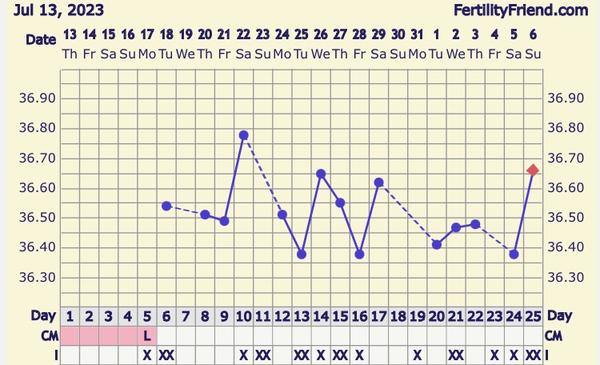 Ahojte, tak sa ozývam zasa aj ja 😌 toto je druhý cyklus po MA a prvy čo som začala merať 😁 toto ide byt zasa napínavé 🫣 teploty chýbajú, lebo dovolenka a zabúdala som … dnes som začala užívať medrol, mam 28 dňovú liečbu, na reproimunologii mi vyšli o trošičku zvýšené cytokiny, ale či to mohol byt dôvod MA netušíme…. Nikde nič iné nezistili, infektologia takisto nic, ešte v septembri hemato… Uvidíme Dr povedala, ze sa snažiť môžeme, ze medrol berú aj ženy v tehotenstve. Myslím ze OVU bola vcera, nemám to potvrdené testami, uvidíme najbližšie dni … 🙂