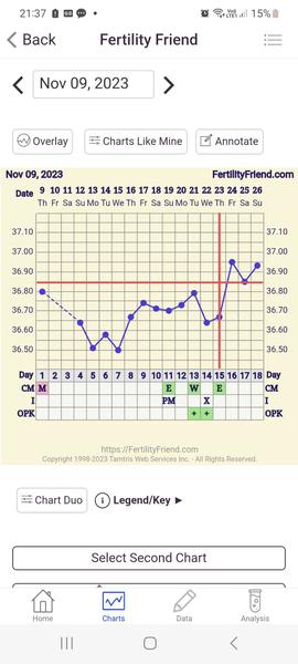 @luciabasistova úplne presne ti to vie povedať iba lekár, ale prikláňam sa k tomu 14DC-15DC. Nie každému okamžite vystrelí teplota. Meriaš prvý mesiac?