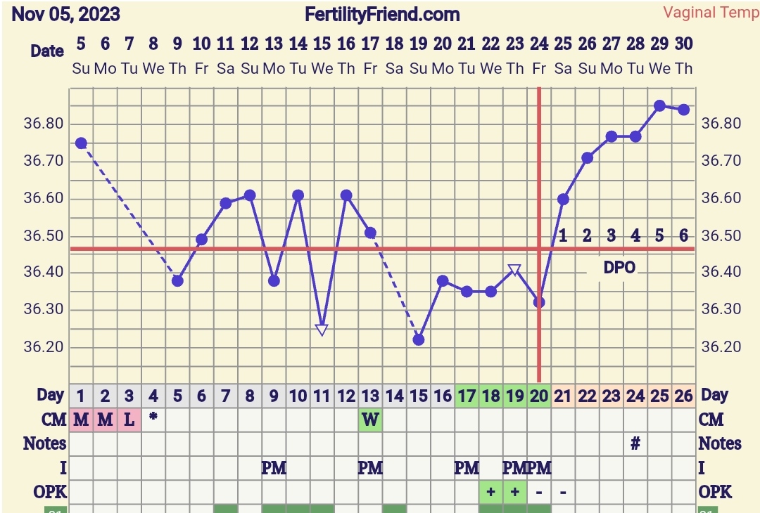 @aga1997 ahoj, ako dnes teplota? Ja dnes takto. Na mňa neskutočne ukážkový graf, keď si vezmem, že lekár už tomu folikulu nedával nádej a povedal, že cyklus bude anovulačný. Väčšinou lietam hore dole... Bojím sa robiť si nádej, ale opica tam niekde hlodá v hlave 🤗