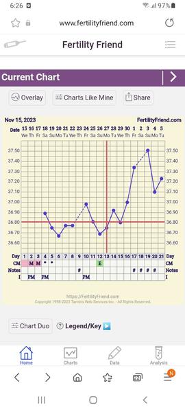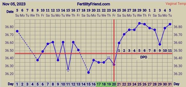 @bambulka711 ja dnes zase trochu nižsie asi to uz bude pkmaly klesať :/ test som ráno nestihla/zabudla lebo som zaspala do roboty tak som hned utekala 🤣 ......nebudes mat nízky progesterón ked mas taku krátku leteálnu a spinís pár dní pred ms ? Robil ti uz dr hormonálny profil ?