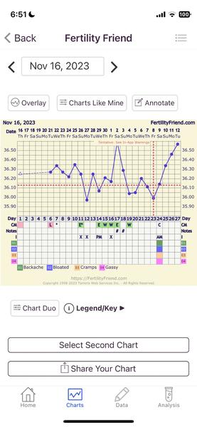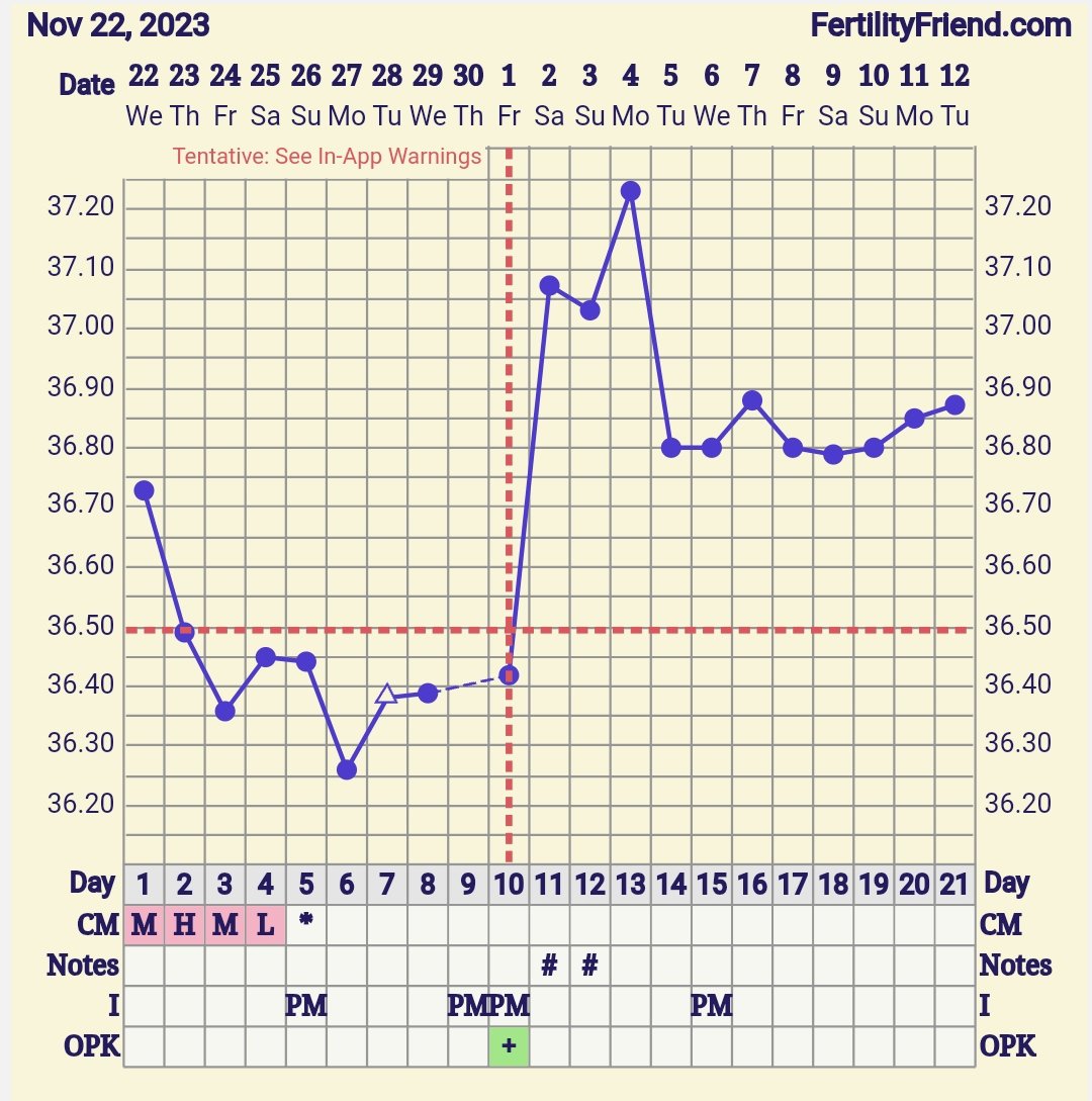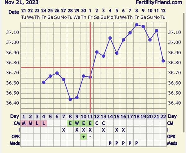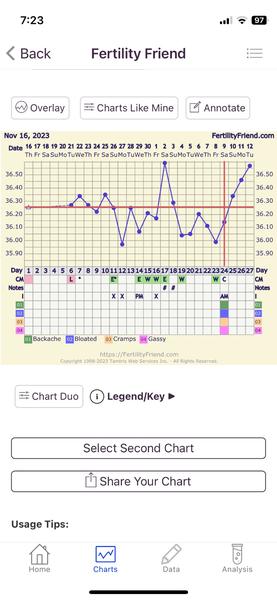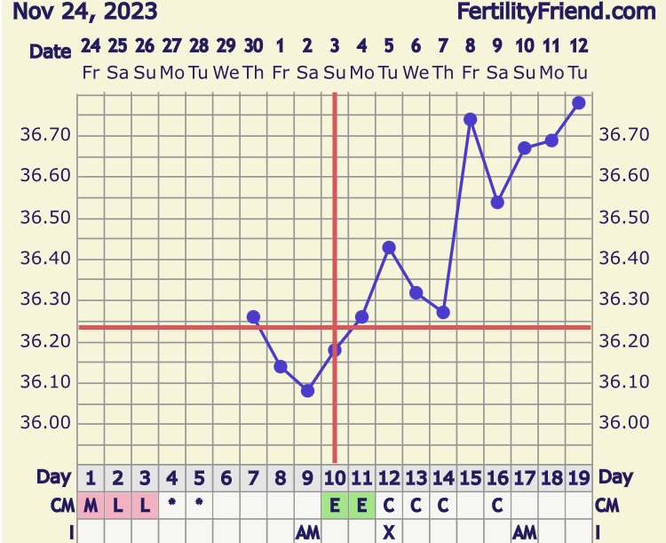 Normálne v nedeľu alebo v pondelok.... ale ešte rozmýšľam nad tým, či mám dobre vyznačenú ovulku, lebo keď vyhodím hlien z grafu, tak ju vyznačí na 15 dc. Tak neviem teraz 🤔