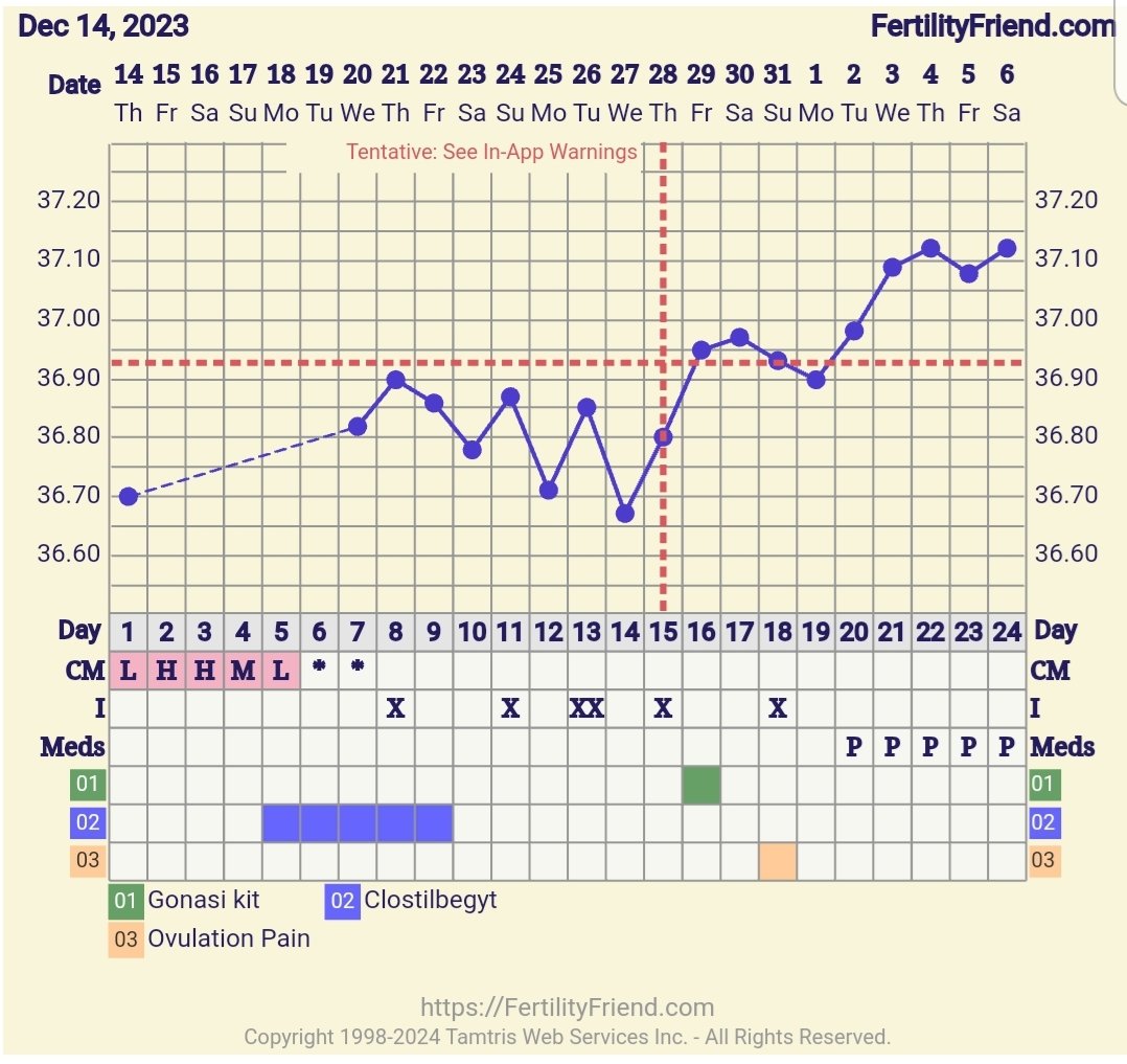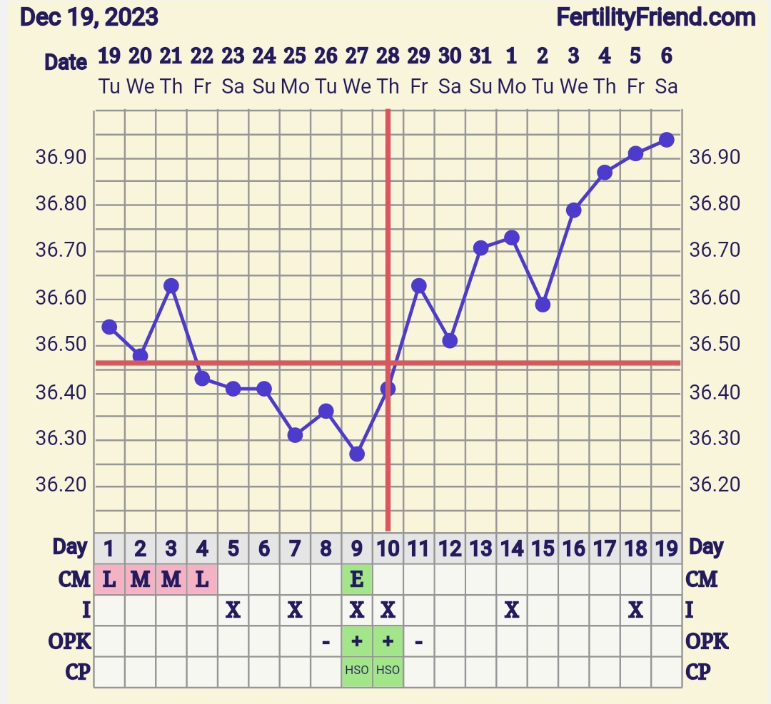 @jakoma podľa mňa 27.12. (21dc) . Neskúšala si odstrániť hlien? Podľa mňa to veľakrát vyznačí ovu v iný deň