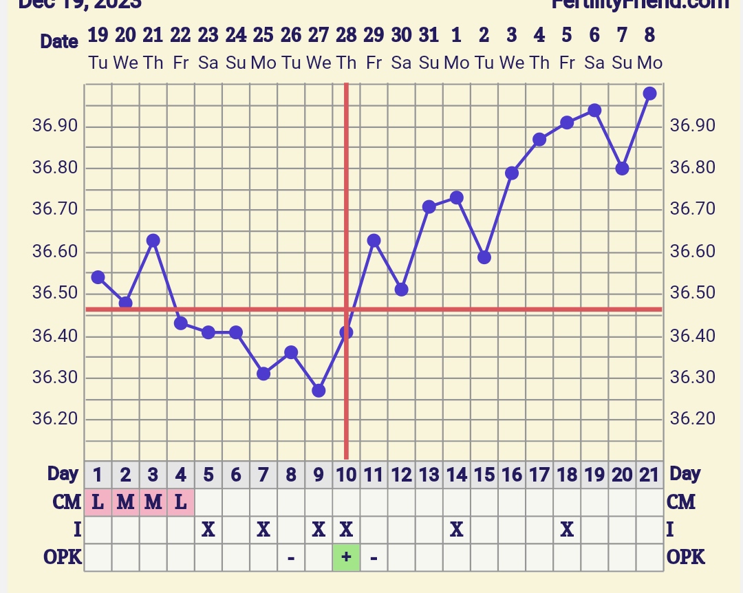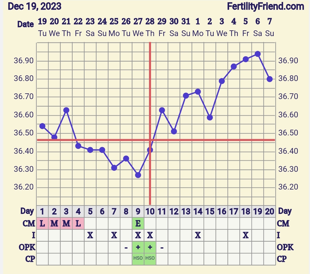 @kristinkaris noooo mne sa to nejak nezdá lebo by si mala mat 3dni vyššie teploty aspoň o 0.2 ako predošlých 6 dni. Inak ja mám divný graf dosť, ovu test boo pozitívny vo štvrtok ale takto mi to tu dalo, keď som tam mala aj výtok tak mi to dalo o dva dni neskôr a @dracik07 ako dnes ?