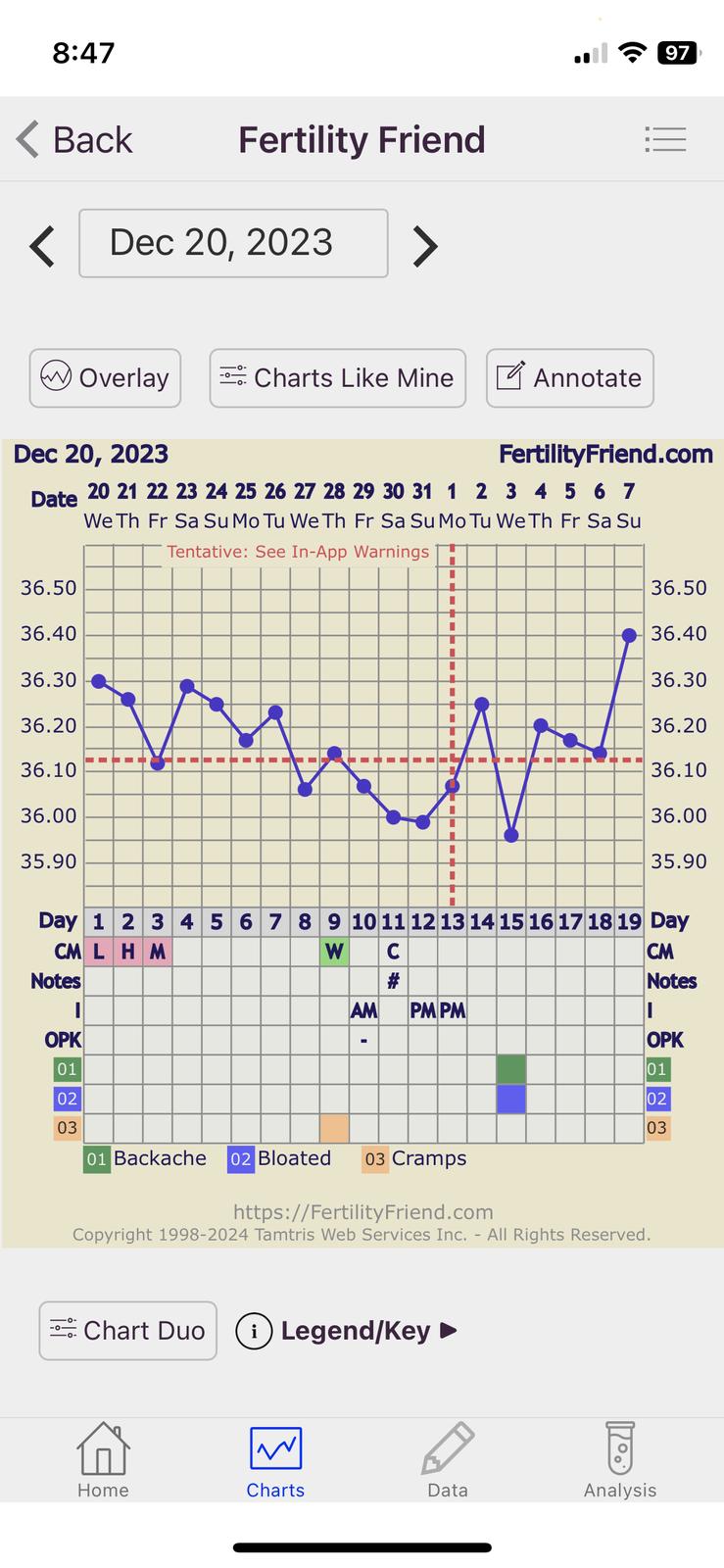 Môj graf dnes . Dnes asi 10-11dpo a takto má bude naťahovať ešte do budúceho utorka.