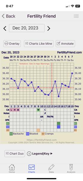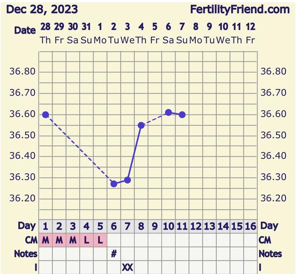 @kristinkaris noooo mne sa to nejak nezdá lebo by si mala mat 3dni vyššie teploty aspoň o 0.2 ako predošlých 6 dni. Inak ja mám divný graf dosť, ovu test boo pozitívny vo štvrtok ale takto mi to tu dalo, keď som tam mala aj výtok tak mi to dalo o dva dni neskôr a @dracik07 ako dnes ?