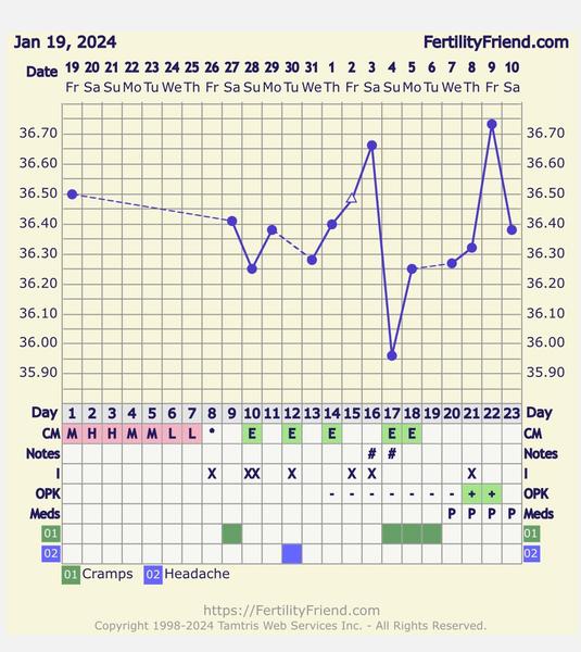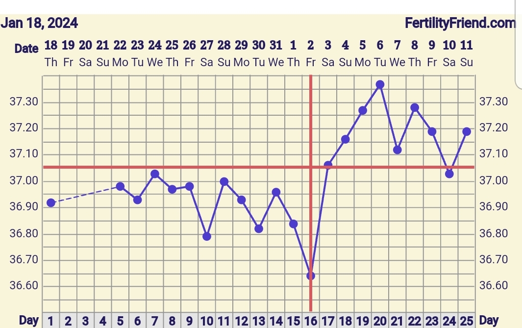Dobre ráno, ja dnes takto. Teplota síce stúpla ale môže byt že ta choroba - aj keď v rovnakom čase som merala či náhodou nemám zvýšenú teplotu a mala som 36.4. Dnes som si povedala že nejdem testovať, dnes mám posledný duohaston a urobím test zajtra ráno. Ak tam bude niečo pokračujem s duphastonim.
