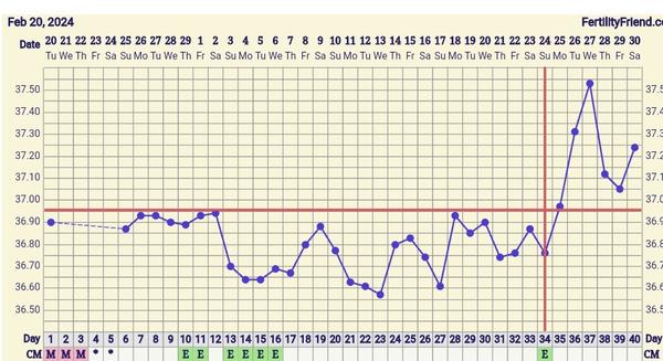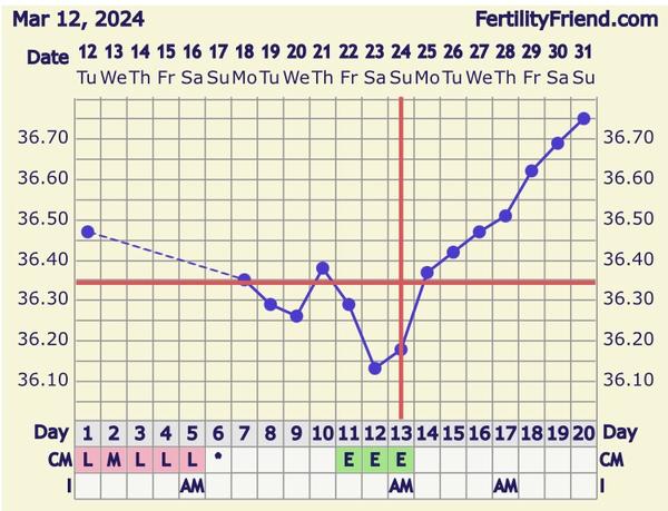 No a ja dnes takto, graf mi vyznačil ovulaciu na 21DC ale ovu musela byť neskôr alebo ešte len prebieha. V stredu som bola aj u gynekológa a ten povedal, že ovu prebehne každú chvíľu. Osobne si myslím že ovu bola 22-23DC. 🤍 tak a teraz už len odpočítavať dni 🤍